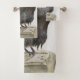 A Raven perched on stone at the Tower of London adorns this fun Halloween towel set! Customise by changing the background colour to suit yourself!