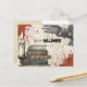 Personalise this Halloween inspired postcard for Halloween. Raven in flight appears in the upper right-hand corner and appears to hover over a lit candle with antique books. Enjoy spooky season!