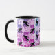 Beautiful raven all over print pattern coffee mug, pink purple blue tones with black raven, moon and floral print.
