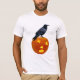 A black raven sits on a carved Jack-o-Lantern on this fun Halloween Shirt.