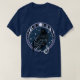 A tribal raven sitting on a circle of stars and moon phases all drawn in an art nouveau style in a backdrop blues and purple.