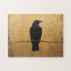 Raven on a Branch Gold Background Jigsaw Puzzle