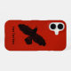 A simple, black silhouette of a Raven (Corvus corax) on a red, leather-look background image. The raven image has been given a slight "rough" or "worn" effect. Customise by adding your own text.