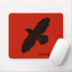 A simple, black silhouette of a Raven (Corvus corax) on a red background. The raven image has been given a slight "rough" or "worn" effect. There are two places for you to add your own text. You may choose another background colour.