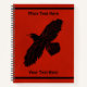 A simple, black silhouette of a Raven (Corvus corax) on a red, leather-look background image. The raven image has been given a slight "rough" or "worn" effect. There are two places for you to add your own text.