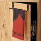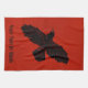 A simple, black silhouette of a Raven (Corvus corax) on a red, leather-look background image. The raven image has been given a slight "rough" or "worn" effect. Add your own text.
