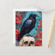 Raven On Skull Red Roses Teal Background Postcard