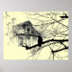 A silhouette of the bird and bare branches. It could be raven, crow or rook. Derelict Russian Victorian wooden house. You can change the colour of the background if you press "customise" button.
