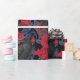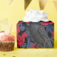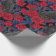 Hand-painted pattern design with raven perching on a metal fence with a key on a ribbon in its bills and red roses