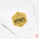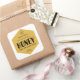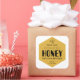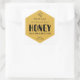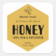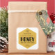 Create modern packaging stickers for your jars using this modern Honey Label design, featuring a trendy layout, beehive background, hand-drawn bee icon and fully editable text and colors.