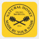 Raw organic honey jar sticker template. Custom honey jar stickers with crossed honey dipper stick logo. Square stickers for raw honey maker or professional beekeeper. Personalise with your own farm name, business name, funny quote or saying, slogan, ingredients, location etc.