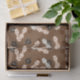 Rawhide Dog Bones-Rawhide bones mixed with black and brown puppy paw prints on a light brown background. The design is a great tissue wrap for puppy gifts any time of the year. The bones are created in two colours. Some of the bones have words engraved onto the bones, some are plain. The black paws are beveled and raised. The brown paws are stamped onto the background.