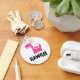 Cute (and goofy) pink dinosaur with spots. Text below reads, Rawr!! This is too cute for any dinosaur fans.