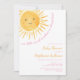 Invite family and friends to your sun-themed girl's baby shower with this cute sunshine baby shower invitation. It features the text " Our Little Ray Of Sunshine Is Almost Here!" in stylish pink typography with a whimsical yellow watercolor sun. The back is decorated with a smiling sun pattern. Easily customisable. Original Watercolor © Michele Davies.