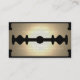 Metallic shine image of razor. Card as a sharp razor blade funny and professional cover. Barber shop and hairstylist cover. Metallic cover shine with adjustable colour of background. Back of card text is behind image.