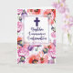 Congratulate someone who has completed their RCIA and is entering into full communion in the Catholic Church. Poppy flowers in pink, purple and red surround the three sacraments of Baptism, Communion and Confirmation.
