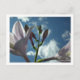 upward shot of hosta buds and flowers, postcard, horizontal orientation, white border all around