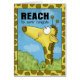 A cartoon giraffe’s head pokes through the top of the trees and the bold caption reads, “ Reach to new heights”. Some images are bordered by a giraffe skin pattern, a black border or no border at all. Original design by Christie Black of Creations from the Heart.