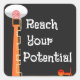 A Business Advertising sticker with a black background cute dog at the bottom begins climbing steps in gold leading to a high tower, A target Goal symbal at the top. Text reads Reach Your Potential. Alter with your business details
