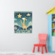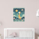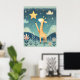 This artwork portrays a charming scene of a giraffe reaching up towards a bright, golden star against a backdrop of a starry night sky. The giraffe's long neck and gentle expression convey a sense of wonder and curiosity. The illustration is rendered in a soft and whimsical style, with delicate textures and a soothing colour palette, creating a calming and enchanting atmosphere.