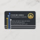 A dark blue cover is accentuated by four vertical orbits moving upwards to your success. At the top of this is your prestigious name, the business name and a gold global logo. Near the base of the card are the contact details in their respective bullets.