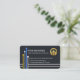 Overleaf, the white horizontal lines from the front are moved here. Card details are over on the right with the gold logo at the top. This is followed by the business name and its contact details.