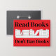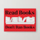 Read books don't ban them. Support you schools and libraries. Don't let the book banners win. Books and text on a red background.