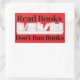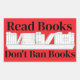 Read books don't ban them. Support you schools and libraries. Don't let the book banners win. Books and text on a red background.