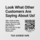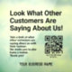 Encourage your small business customers to leave a review. Headline reads: "Look what other customers are saying about us". Change wording to suit your requirements. Change the QR Code link to the link leading to your own reviews page. If Google, advice is given here: https://tinyurl.com/5ydtb22k