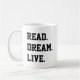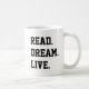 READ DREAM LIVE. Black and White Coffee Mug. Excellent for book lovers, great for author giveaways etc. Customisable text. Visit our Zazzle store, Bookles, to view our growing range of designs, and please contact us if you require any assistance.