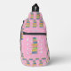 You just found your perfect gift for your book nerd friend ! Indeed this pink sling bag with a colourful bookstack pattern would make any reader happy . It can be personalise with the name of a reading group or you can remove the text altogether .