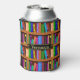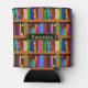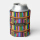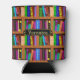 Enjoy a good book and a cold drink at the same time with this whimsical can cooler. This design for bookworms is made to resemble a colourful bookshelf. The repeating pattern has 25 books that lean or stand, all on a wooden-looking shelf.