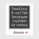 Reading and coffee because murder is wrong sticker. Funny sayings for readers and coffee lovers. Romantic thriller and dark romance quotes aesthetic stickers. Black novel lover gift idea.