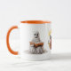 Reading Ghost and Pumpkin" Halloween Mug