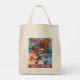 The printing came out very well, better than I had anticipated. The natural color fabric is sturdy with strong seams and comfortable handles. This tote fits easily over my shoulder. As it is filled, the bottom flattens out--very cool! I would buy this product again. This grocery tote holds a lot of groceries! The image quality was very good. The colors were a little darker than I had expected. The darkness may have been due to printing on a natural color fabric rather than on white. The cat design is attractively centered on the tote. The spirit of the design is very lively, just as it appears on the Zazzle website.