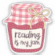 This cute Reading is my Jam design is perfect for bookish merch and putting on your water bottle, laptop or Kindle.