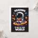 Reading is out of this world shows a cute astronaut sitting on a bright planet while reading a book in space. A playful space themed reading scene for book lovers, students and science fans who enjoy imagination and curiosity.