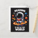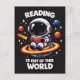 Reading is out of this world shows a cute astronaut sitting on a bright planet while reading a book in space. A playful space themed reading scene for book lovers, students and science fans who enjoy imagination and curiosity.