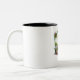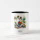 Reading lover girls custom Two-Tone Coffee Mug. It has cute illustration of a girl reading book with dog on her lap in the open garden with plants. Just use edit tool to personlize