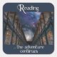 Reading, the adventure continues square sticker