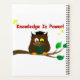 The original wise owl wearing a tassel and reading on a tree with a quote of an English philosopher, Francis Bacon, "Knowledge Is Power!" Great for students and book lovers! Unique gifts for back-to-school, graduations, school events, and other special occasions!