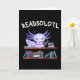 Lovely design featuring a cute axolotl sitting on a bookshelf and the quote "Readsolotl". Good for the young and the old.
