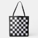 All over print bag with an 8 by 8 black and white chequerboard grid perfect for a checkers or chess game. Chequered game pieces are not included. Chess game pieces are not included.