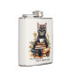 The flask itself is fine. It’s a cheap flask, obviously bought in bulk, however am prepared to overlook that. Given that it is a personalized item, I would have liked to have seen gift boxing instead of the generic packaging. Terrible printing, and/or quality. It’s a cheap, tacky vinyl. It is not cut straight and is also applied in a way that it is overhanging the bottom, causing the glue to catch on items and it will eventually roll and tear, damaging the wrap.