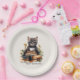Step into the back-to-school season with the cool confidence of a cat! The 'Inscrutable Like a Cat, Ready For School Like A Boss' paper plate features a stylish black cat lounging confidently in front of book stacks and a cup of coffee. Combining humour, charm, and determination, this design is perfect for students and cat lovers who tackle challenges with poise and style.