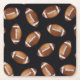 Set of 6 square pulp board disposable coasters with an image of footballs on black. See matching plastic coaster and paper cocktail napkin. See the entire Father’s Day Coaster collection in the FOOD/BEV | Coasters section.