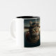 This charming two-tone ceramic mug features an adorable cat pilot, ready to soar to new heights.
