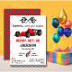 Rev up your child's sixth birthday celebration with our vibrant and exciting "Ready, Set, Go" racing car-themed invitations! Perfect for little racers, this high-energy invitation sets the tone for an unforgettable birthday party. The front of the invitation features a dynamic red racing car graphic, complete with sleek details and a sense of motion. Above the car, two crossed chequered flags add an authentic racing feel, accompanied by the playful slogan "Racers... Start your engines." Bold, red typography announces "READY. SET. GO," capturing the excitement and anticipation of the event. The back of the invitation complements the front with a red and black chequered border, tying together the racing theme seamlessly. Personalise the text effortlessly through our user-friendly interface before placing your order. Order today and get ready to celebrate your little racer’s big day in style!🏁🚗 Thank you for visiting. If you have any doubts regarding customisation pls message me here or contact me at arteartz0588@gmail.com.