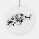 Decisive contours wrap a kind face and flowing tail just before the dash. Hang it in a favourite spot and smile each December. A heartfelt token for families who adore this breed.