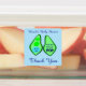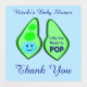 This awesome set of food labels is ideal for Baby shower favours. The design features a graphic image of a green Pea pod containing 2 green peas and a big blue pea. The large blue pea has a cute little face with eyes and a mouth. On the other side of the pea pod in darker pink text it says "Baby Boy Ready to Pop".